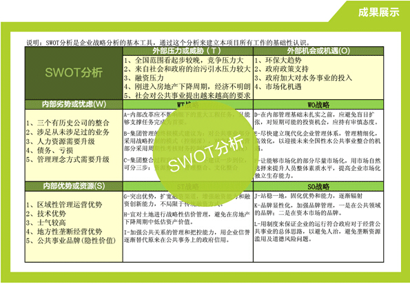 通过内部管理诊断、外部环境分析和内部资源能力分析,发现机会和威胁,找出优势和劣势,明确公司总体发展思路。