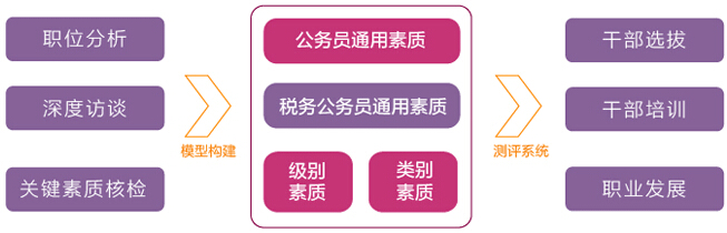 构建分级别、分类别领导职位胜任素质模型,形成相应“领导职位的任职标准”;以领导职位胜任素质模型为基础,开发相应的素质测评及考核工具,包括心理测量问卷、专业知识题库、结构化面试、无领导小组讨论和公文筐测验题目。