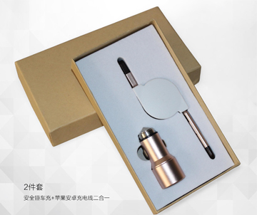 全金属双输出安全锤车充+伸缩线两件套