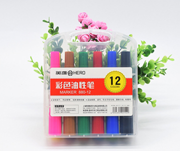 英雄12色双头油性笔 12支装