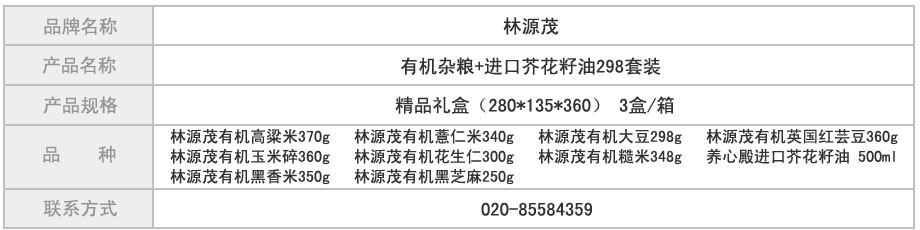 粮油米面> 【团购】林源茂有机杂粮+进口芥花籽油298套装