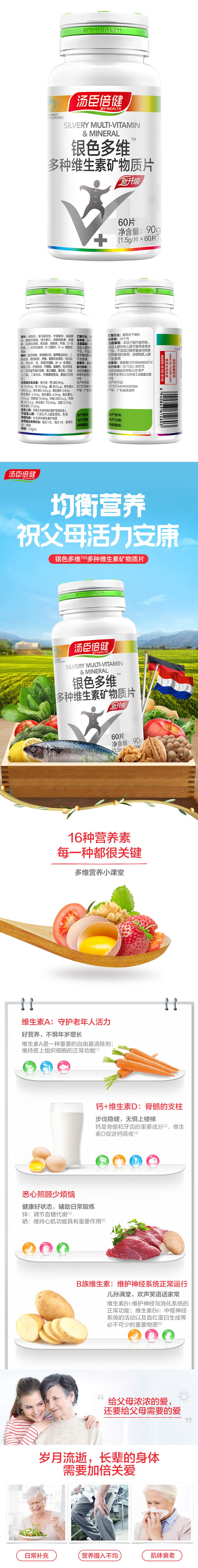 营养保健> 汤臣倍健 银色多维 多种维生素矿物质片 1.5g/片*60片