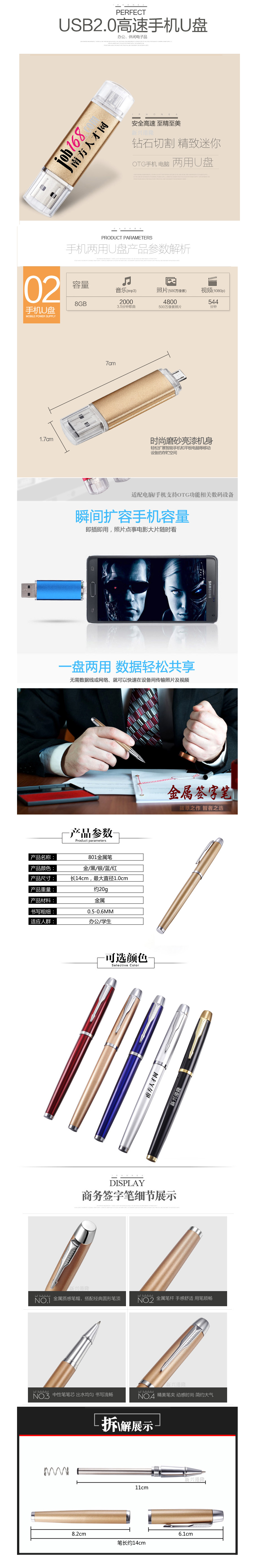签字笔+手机两用U盘+礼盒 可定制LOGO