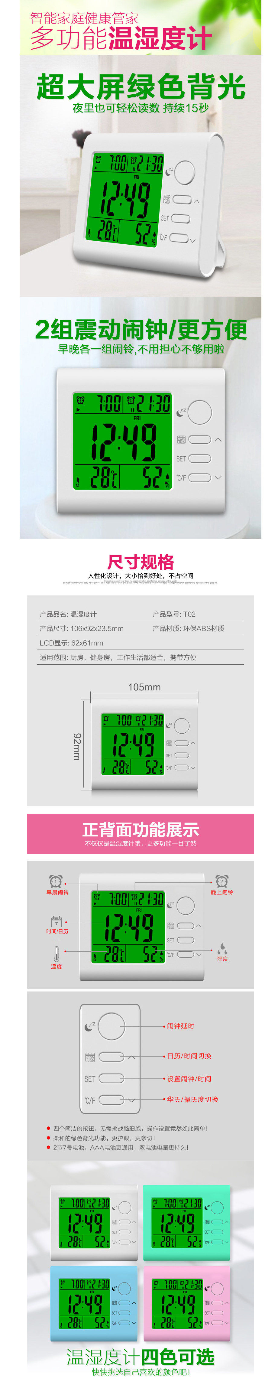 礼品定制> 乐易仕 多功能温湿度计万年历 闹钟电子数字温湿度计