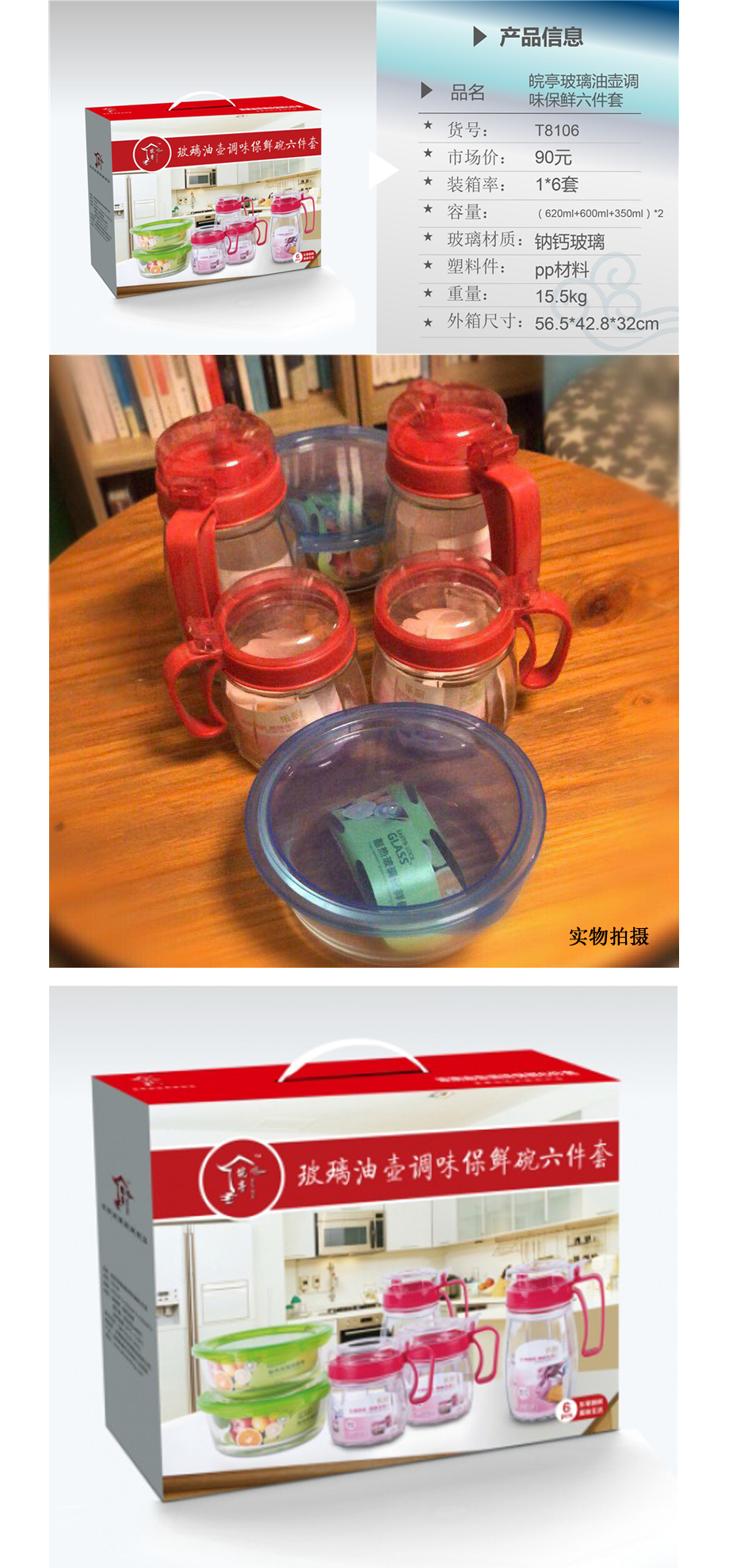 礼品定制> 皖亭玻璃油壶调味保鲜六件套