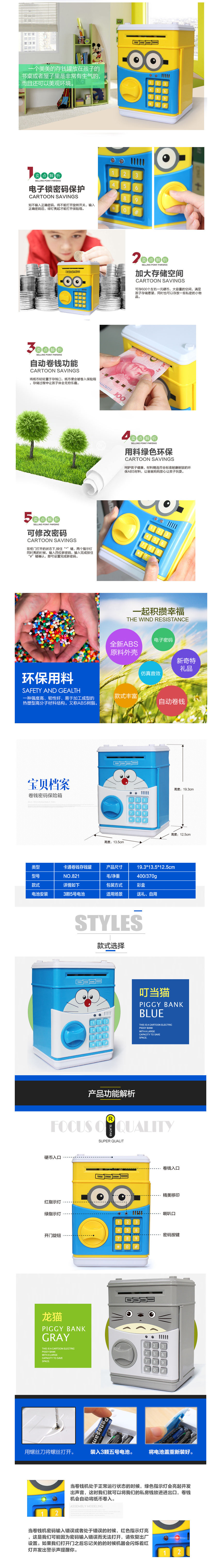 礼品定制> 卡通音乐卷钱ATM密码储蓄罐硬币纸币存钱罐