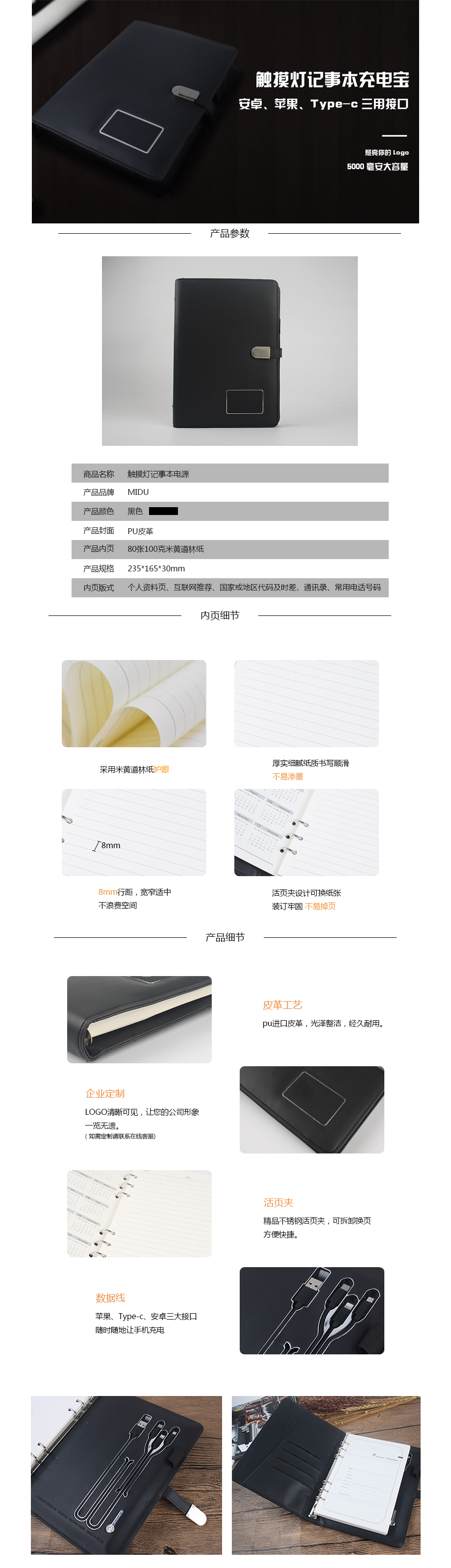 礼品定制> 触摸灯记事本移动电源