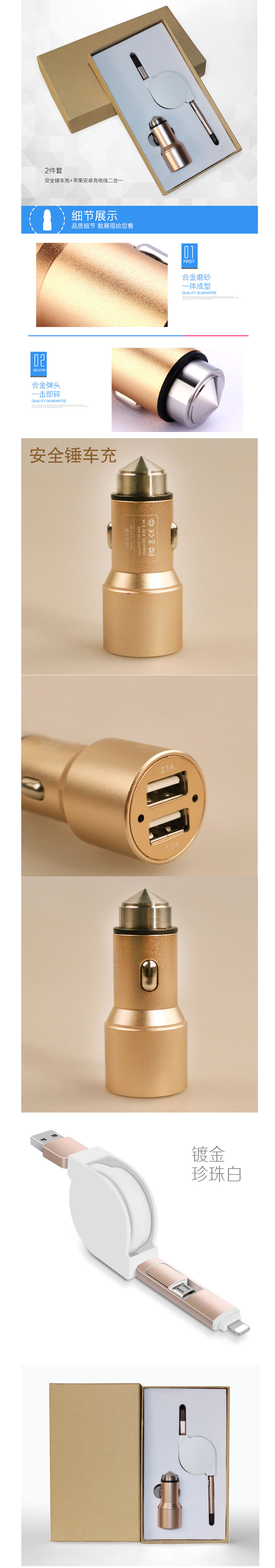 礼品定制> 全金属双输出安全锤车充+伸缩线两件套