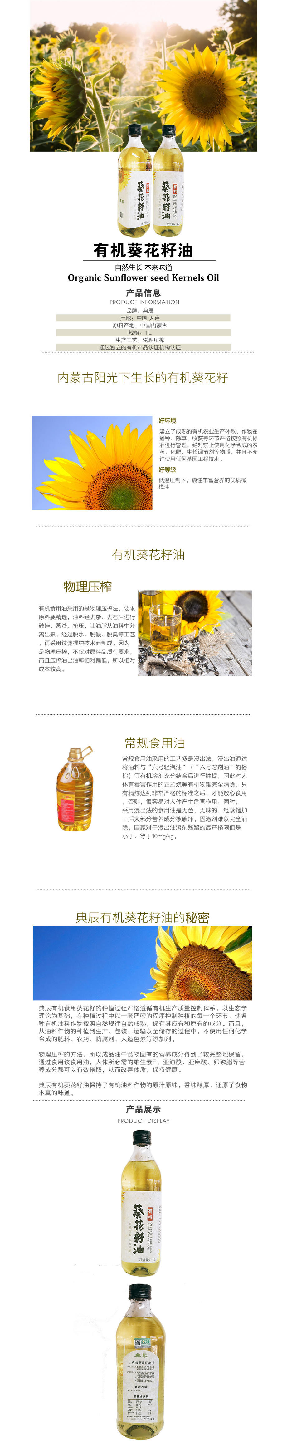 粮油米面> 【团购】典辰有机葵花籽油1L