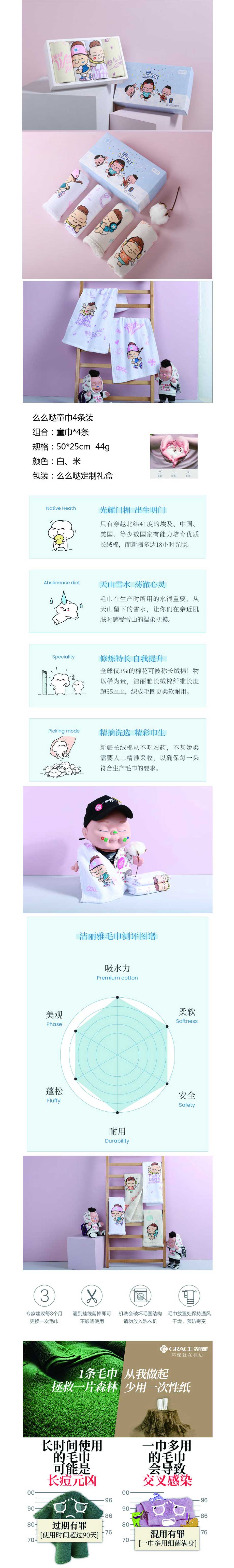 美妆个护> 洁丽雅 么么哒童巾 50*25cm*4条