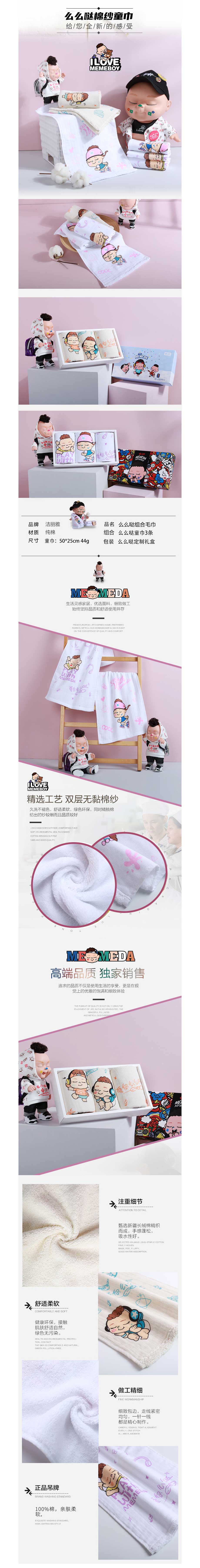 美妆个护> 洁丽雅萌趣么么哒童巾3条装