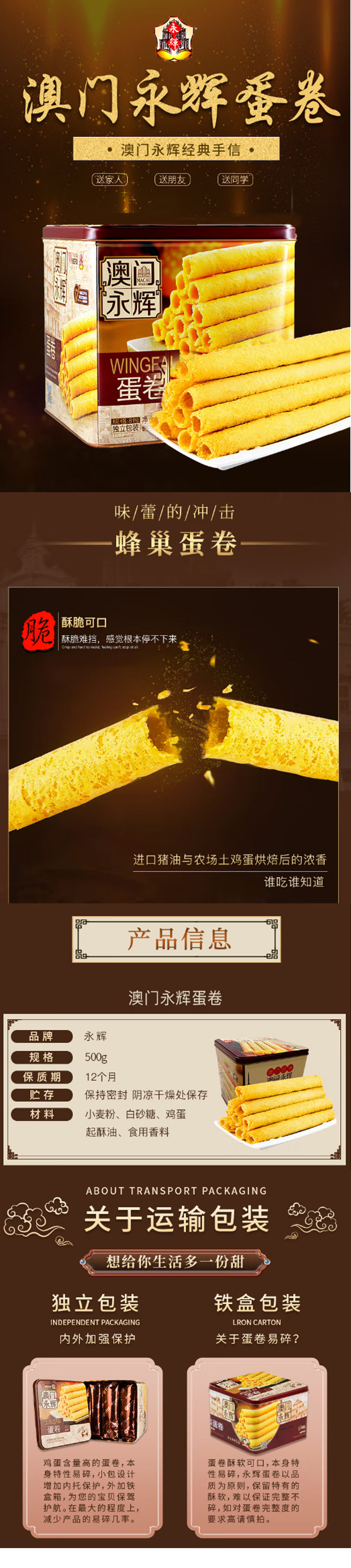 休闲零食> 澳门永辉 经典原味手工鸡蛋卷500g