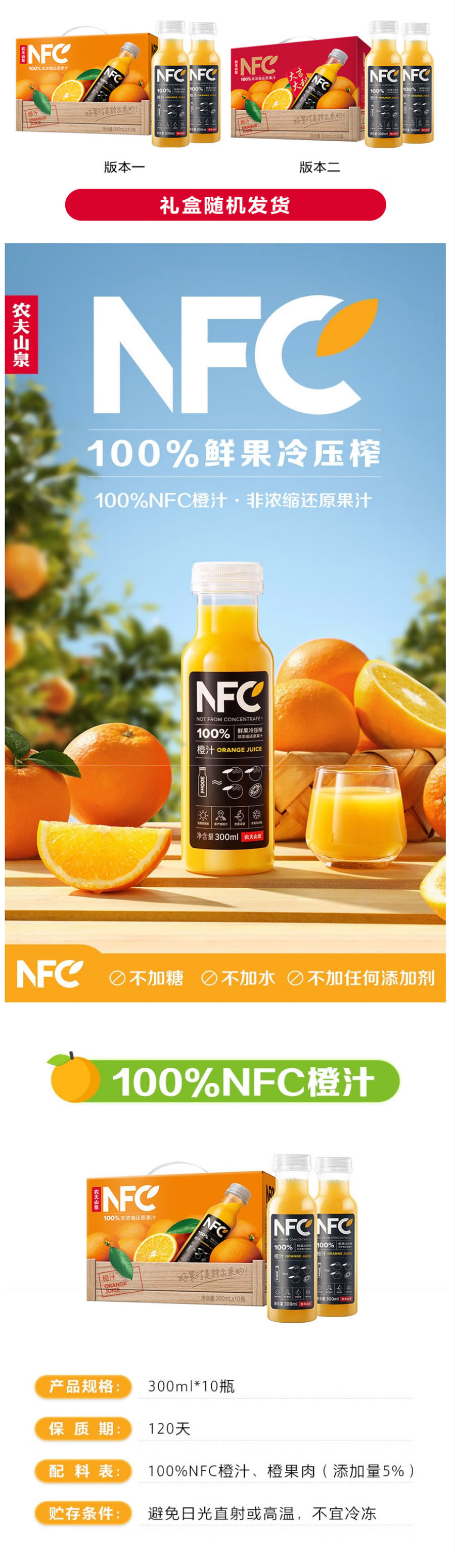 清凉饮品> 农夫山泉NFC果汁饮料300ml*10瓶