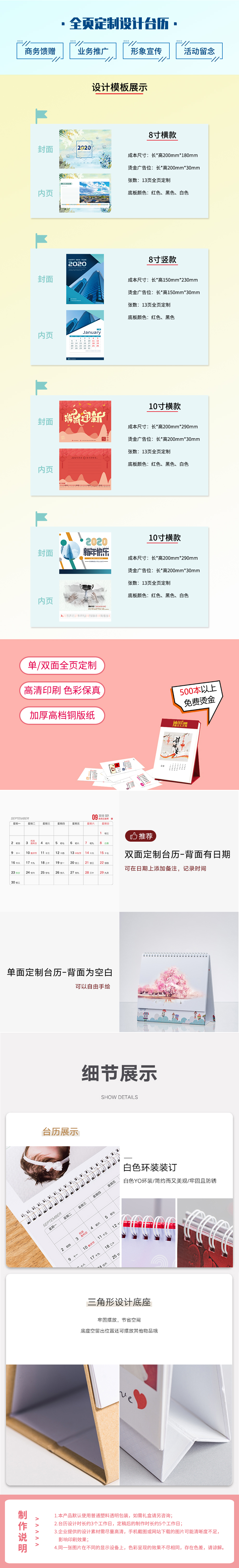 全页定制台历,支持制作烫金logo广告位,量多更优惠
