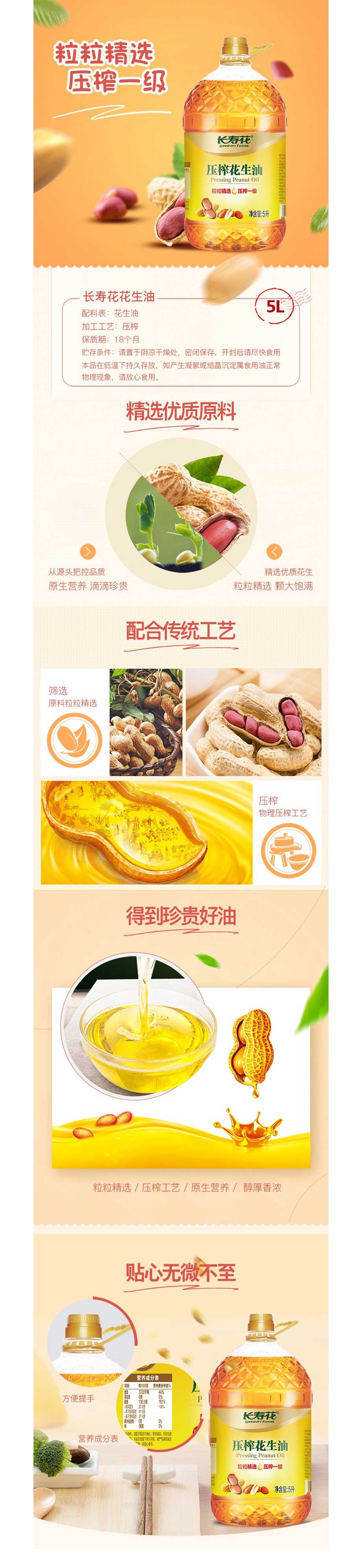 粮油米面> 【团购】长寿花压榨花生油5L