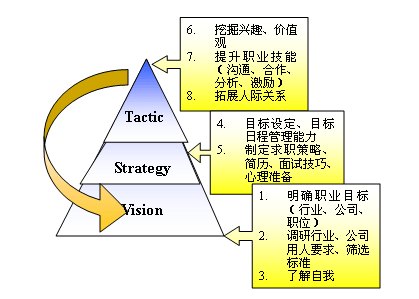 E-------Estimate (评估) 受测者的求职准备,包括自我定位、求职理念等; 面试能力以及改进建议; 求职能力指数,包括求职主动性、专业水平。